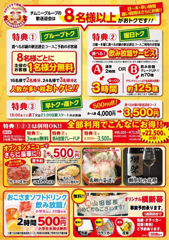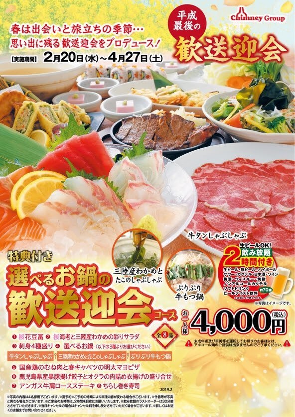 もうすぐ終了❣️4月27日までの限定で【歓送迎会コース】受付中です❣️特に8名様以上がお得🉐特典いっぱい💘